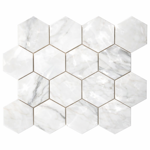 View full detailsCalacatta Gold (Italian) Calacatta Gold Marble 3 x 3 Polished Hexagon Mosaic delivers Polished marble character with a timeless profile for walls a...