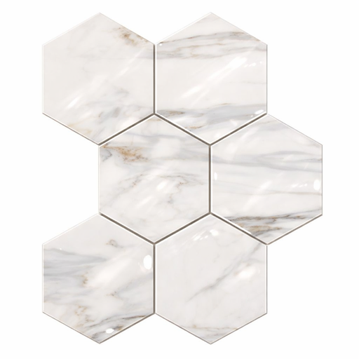 View full detailsCalacatta Gold (Italian) Calacatta Gold Marble 5 x 5 Polished Hexagon Mosaic Hexagon Combination Mosaic (w/ Calacatta Gold) is a Polished marble mo...