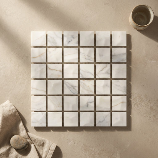 View full detailsCalacatta Gold (Italian) Calacatta Gold Marble 5/8 x 5/8 Polished Mosaic features a Polished surface and marble appeal suited to living areas. A sm...