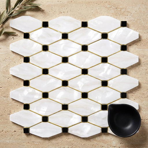 View full detailsBianco Dolomiti (White Dolomite) Bianco Dolomiti Polished Octagon Mosaic Octagon Mosaic w/ Black features a Polished surface and dolomite appeal su...