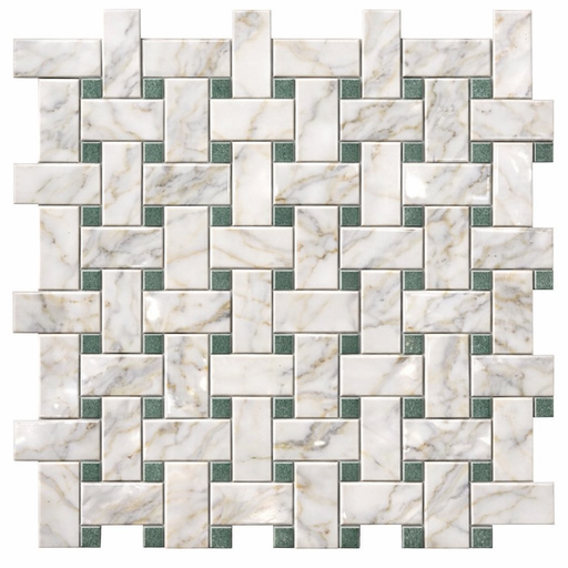 Calacatta Gold (Italian) Marble Polished Basketweave Mosaic (w/ Ming-Green - (LARGE))