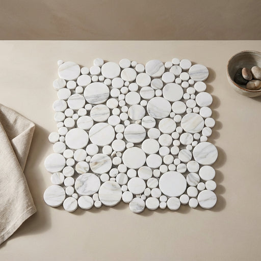 View full detailsCalacatta Gold (Italian) Calacatta Gold Marble Polished Bubbles Mosaic brings marble depth and a Polished finish to feature walls. Choose it to add...