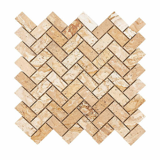 View full detailsValencia Travertine 1 x 2 Tumbled Travertine Herringbone Mosaic brings travertine depth and a tumbled finish to feature walls. Choose it to add las...