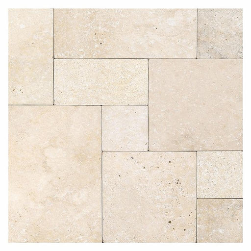Ivory / Light Ivory Travertine Versailles Pattern Cream Tumbled Paver