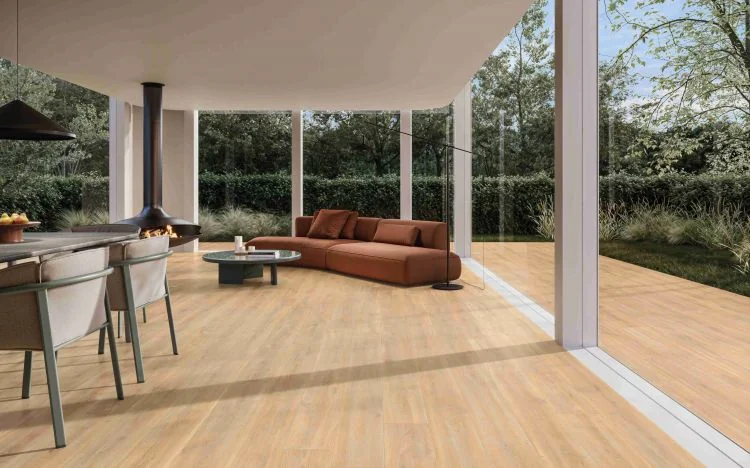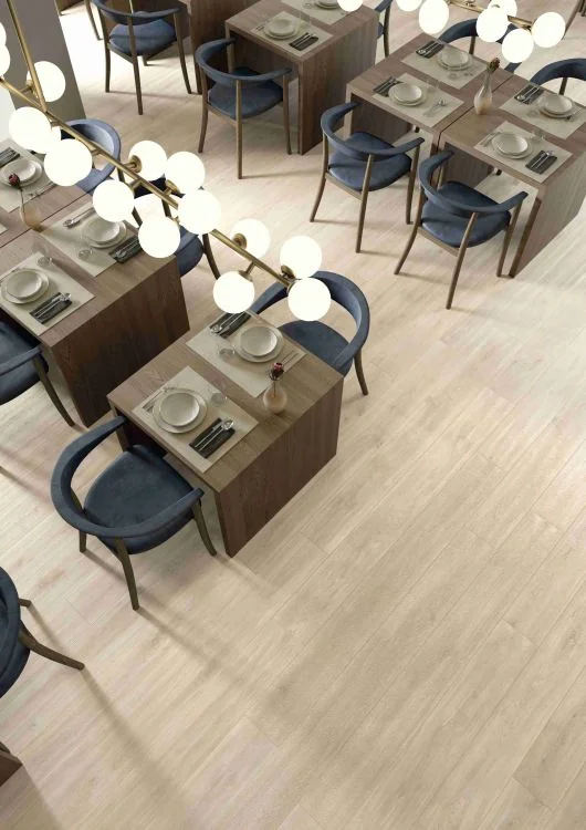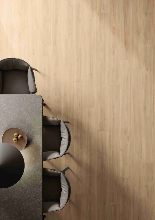 In bedrooms or studies, ceramic wood tile or wood look ceramic tile brings the appearance of timber into spaces that benefit from warmer textures. When those rooms connect to busier corridors, switching underfoot to porcelain planks in a similar tone preserves the look while gaining extra durability. Blue ceramic tile on a feature wall can then echo the floor color without overwhelming the layout.