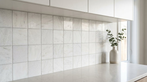 Thassos marble excels in luxury bathrooms where its pure white tone creates a bright, spa-like atmosphere. It's popular for shower walls, shower floors (in mosaic format), vanity surrounds, and bathroom floors. In kitchens, Thassos makes a clean, contemporary backsplash. It also works beautifully as accent tile within larger marble installations - for example, a Thassos hexagon mosaic accent band within a Carrara marble shower.
