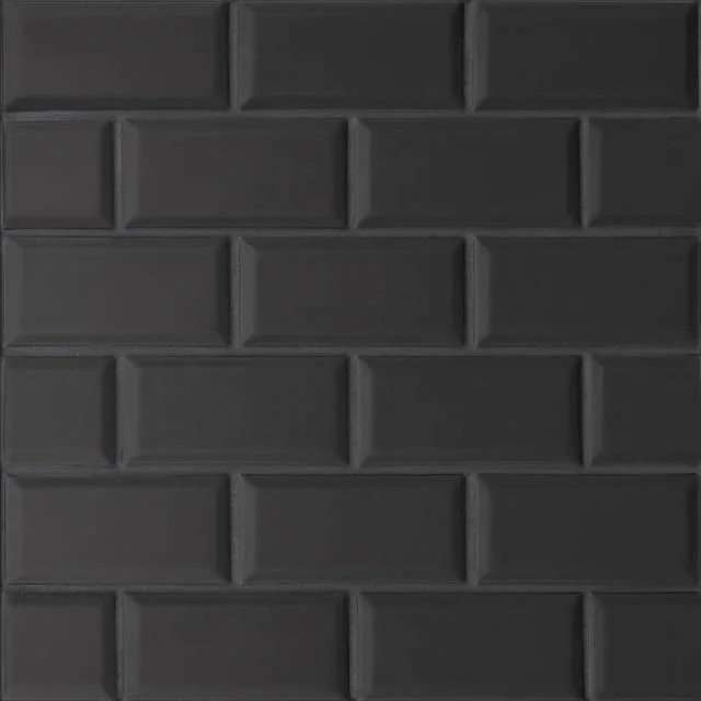Le Cafe 2x4 Bevel Off Set Mesh Mount Black Gloss 11.75x11.5 Porcelain Mosaic