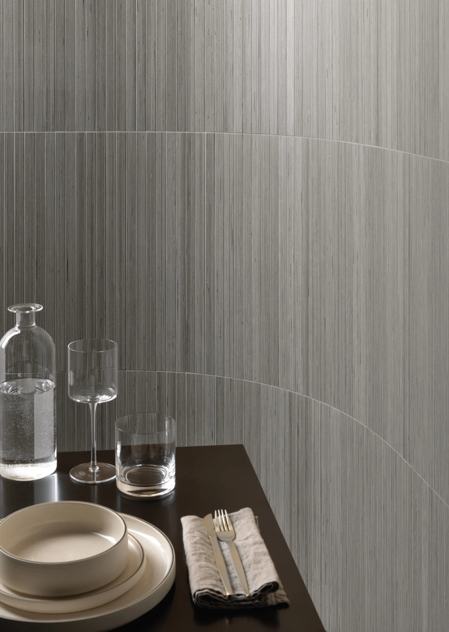 From the Matieres series, Mou Modulo Listello offers subtle movement in a tidy 8.5×16 format. Each piece covers about 0.90 sq ft, and 5 pieces per box total about 4.52 sq ft for easy layouts.